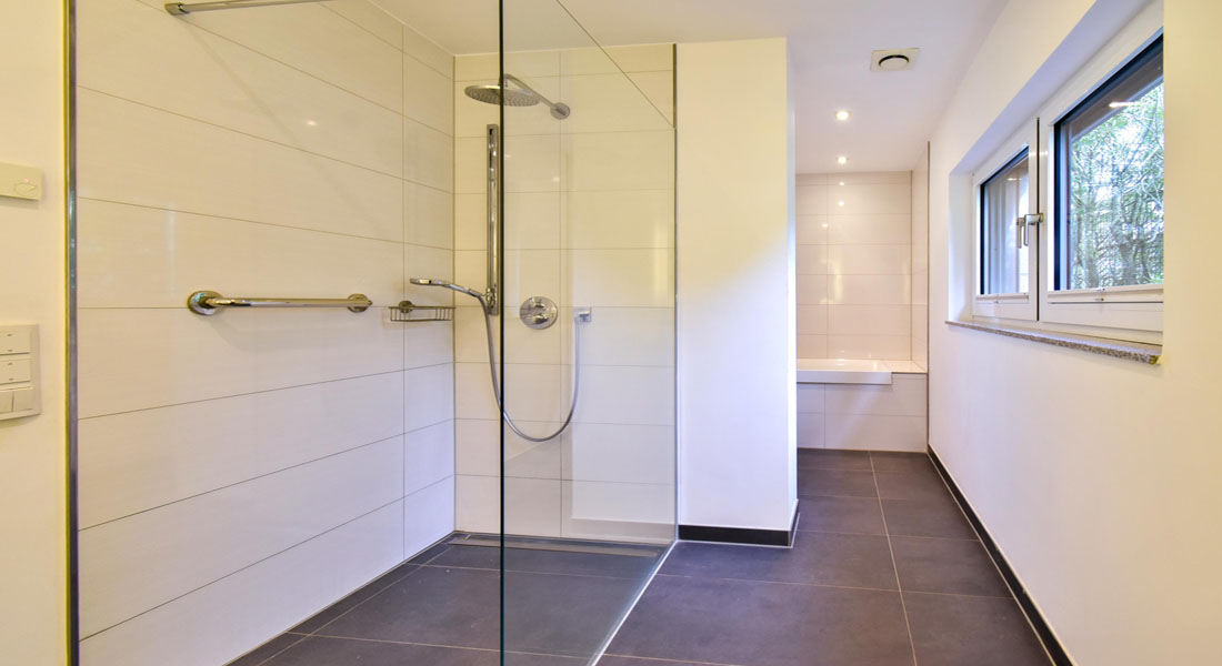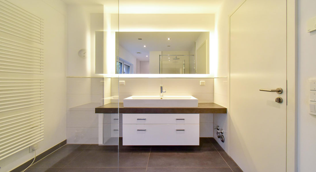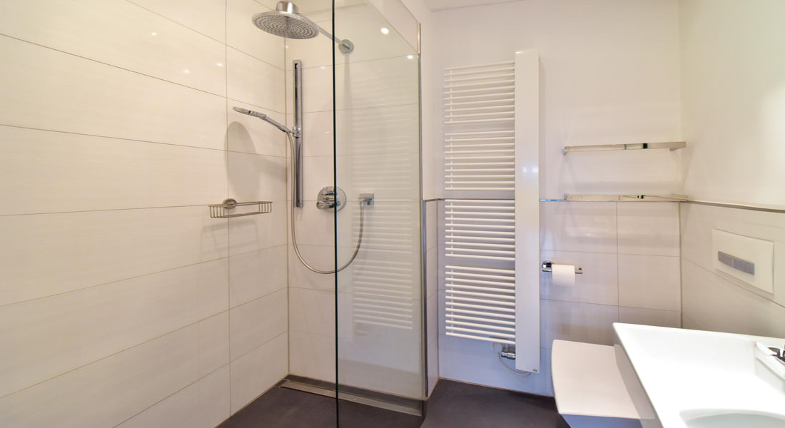 Ergänzt wird dieser Bereich durch ein Duschbad, welches sich auch perfekt als Gäste-WC eignet.