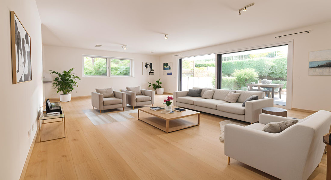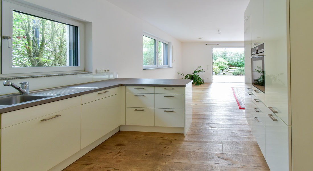 Die außentemperaturgeregelte Fußbodenheizung in allen Räumen bietet einen angenehmen Komfort.