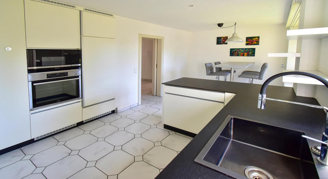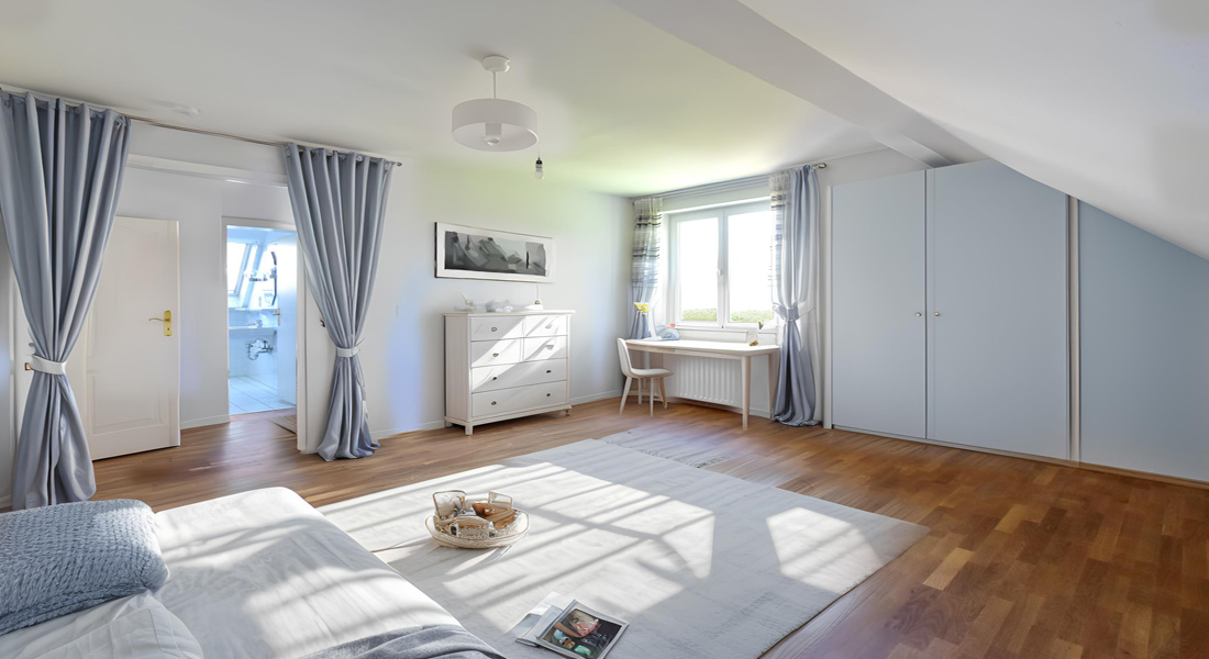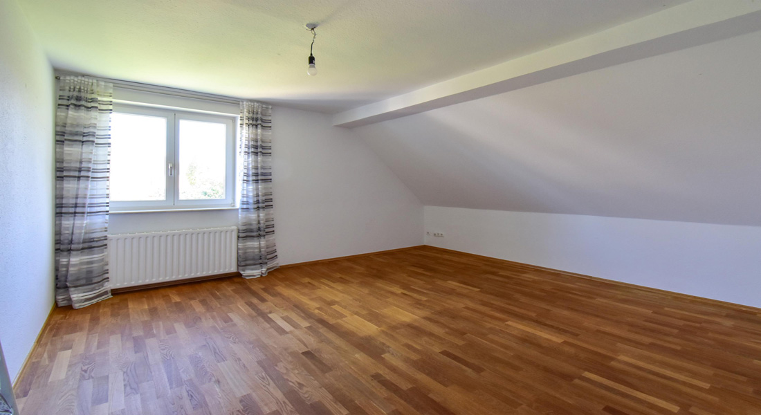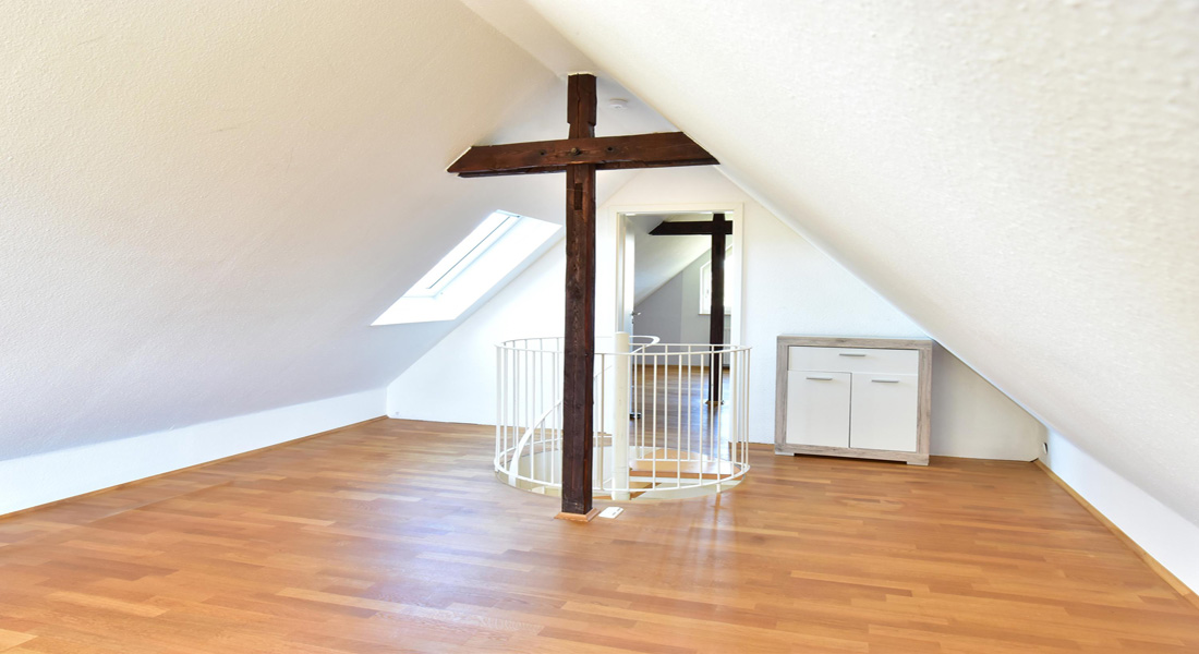 Die Wohnfläche verteilt sich auf zwei Wohngeschosse sowie ein ausgebautes Dachstudio.